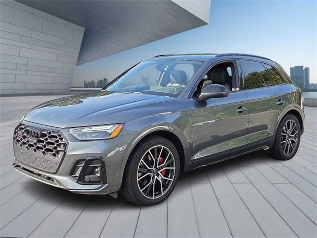 Certified. Daytona Gray Pearl Effect 2023 Audi SQ5 Premium Plus quattro quattro 8-Speed Automatic with Tiptronic 3.0L TFSI RECENT HOFFMAN TRADE, AUDI CERTIFIED, SERVICE RECORDS AVAILABLE, ONE OWNER, NAVIGATION GPS NAV, SUNROOF MOONROOF, REMAINDER OF FACTORY WARRANTY, 6 MONTH OR 6,000 POWERTRAIN WARRANTY, Audi Active Lane Assist, Audi Advanced Key, Audi Virtual Cockpit Plus, Auto-Dimming Power Folding Exterior Mirrors, Bang & Olufsen 3D Sound System, Black Exterior Mirror Housings, Black Exterior Trim, Black Optic Package, Convenience Package, Driver Seat Memory, Fine Nappa Leather Seating Surfaces, Fine Nappa Leather Seats, Hands-On Detection Steering Wheel, Heated Steering Wheel, Leatherette Covered Center Console, Navigation Package, Panoramic Sunroof, Premium Plus Package, Radio: MMI Navigation Plus, Red Brake Calipers, S Sport Package, SiriusXM w/360L, Sport Adaptive Air Suspension, Sport Rear Differential, Top View Camera System, Traffic Jam Assist, Wheels: 20" 5-V Spoke-Star Design.