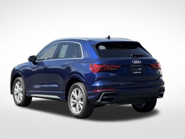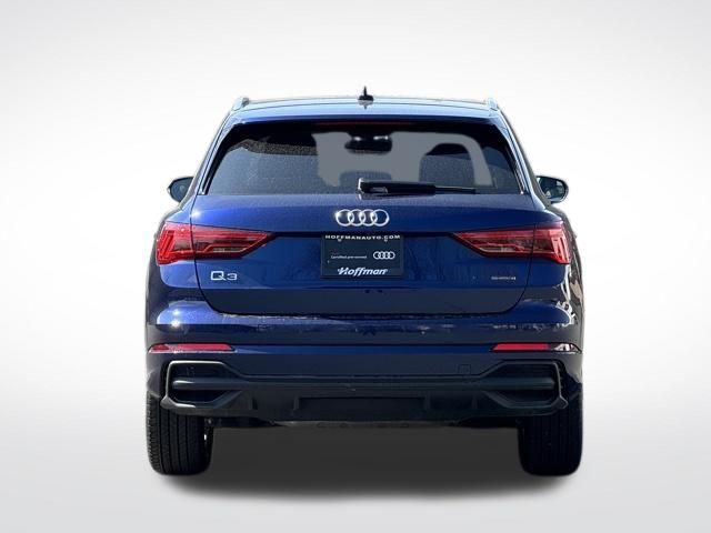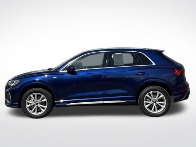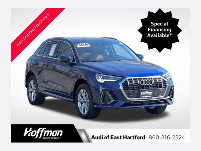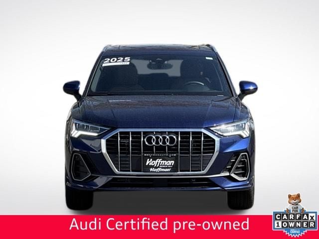 NAVIGATION GPS NAV, VERY RARE S LINE!!, ONE OWNER, CLEAN CARFAX...NO ACCIDENTS, RECENT HOFFMAN TRADE, SUNROOF MOONROOF, AUDI CERTIFIED, 10 Speakers, 4-Wheel Disc Brakes, ABS brakes, Air Conditioning, Alarm with Motion Sensor, Alloy wheels, AM/FM radio, Audi Advanced Key, Audi Beam-Rings, Audi Guard Protection Kit, Audi smartphone interface (Apple CarPlay/Android Auto), Auto High-beam Headlights, Auto-Dimming Power-Folding Exterior Mirrors, Auto-Dimming Rear-View Mirror, Automatic temperature control, Brake assist, Bumpers: body-color, Convenience Package, Delay-off headlights, Driver door bin, Driver Seat Memory, Driver vanity mirror, Dual front impact airbags, Dual front side impact airbags, Electronic Stability Control, Emergency communication system: Audi connect CARE, Exterior Parking Camera Rear, Four wheel independent suspension, Front anti-roll bar, Front Bucket Seats, Front Center Armrest, Front dual zone A/C, Front fog lights, Front reading lights, Fully automatic headlights, Garage Door Opener (HomeLink), Heated door mirrors, Heated Front Bucket Seats, Heated front seats, Illuminated entry, Knee airbag, Leather Seating Surfaces, Leather Shift Knob, Leather steering wheel, LED Interior Lighting Package, Low tire pressure warning, Occupant sensing airbag, Outside temperature display, Overhead airbag, Overhead console, Panic alarm, Passenger door bin, Passenger vanity mirror, Power door mirrors, Power driver seat, Power Liftgate, Power moonroof: Panoramic, Power passenger seat, Power steering, Power windows, Radio data system, Radio: Audi Sound System, Rain sensing wipers, Rear air conditioning, Rear anti-roll bar, Rear reading lights, Rear seat center armrest, Rear window defroster, Rear window wiper, Remote keyless entry, SiriusXM with 360L (3 Months Trial), Speed control, Speed-sensing steering, Split folding rear seat, Spoiler, Steering wheel mounted audio controls, Tachometer, Telescoping steering wheel, Tilt steering wheel, Traction control, Trip computer, Turn signal indicator mirrors, Variably intermittent wipers, Wheels: 18" 5-V-Spoke-S Design, Wireless Phone Charging Pad. CARFAX One-Owner. Clean CARFAX. Certified. Navarra Blue Metallic 2025 Audi Q3 Premium S Line quattro quattro 8-Speed Automatic with Tiptronic 2.0L 4-Cylinder TFSI