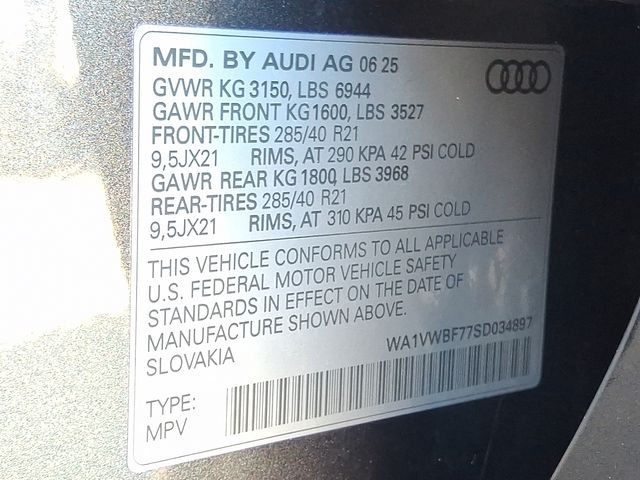 Certified. Daytona Gray Pearl Effect 2025 Audi SQ7 Prestige quattro quattro 8-Speed Automatic with Tiptronic 4.0L V8 Turbocharged DOHC 32V LEV3-ULEV125 500hp RECENT HOFFMAN TRADE, CLEAN CAR FAX...NO ACCIDENTS, AUDI CERTIFIED, SERVICE RECORDS AVAILABLE, ONE OWNER, NAVIGATION GPS NAV, SUNROOF MOONROOF, REMAINDER OF FACTORY WARRANTY, 6 MONTH OR 6,000 POWERTRAIN WARRANTY, Active Roll Stabilization, Animation for Headlights & Taillights, Anthracite Gray Audi Rings, Audi Sport Crimson Red Stitch Package, Black Dinamica Headliner, Black Exterior Trim, Black Optic Package, Dual-Pane Acoustic Glass for Side Windows, Extended Leather Package, HD Matrix-Design LED Headlights w/Audi Laser Light, Head-Up Display, Headlight Washer System, Heated Rear Seats, Intersection Assist, Luxury Package, Memory Function for Front Passenger Seat, Navigation System, Navigation system: Audi MMI Navigation plus with Touch Response, OLED Taillights, Power Soft-Closing Doors, Prestige Package, Rear Door/Side Windows & Tailgate Sunshades, Red Brake Calipers, Red Contrast Stitching, Red Seat Belts, Remote Park Assist Plus, S Sport Package, Sport Rear Differential, Sports Exhaust Resonator Kit, Traffic Sign Recognition, Trailer Hitch, Ventilation & Massage Function for Front Seats, Wheels: 21" 6-Y-Spoke Design Black Finish.
