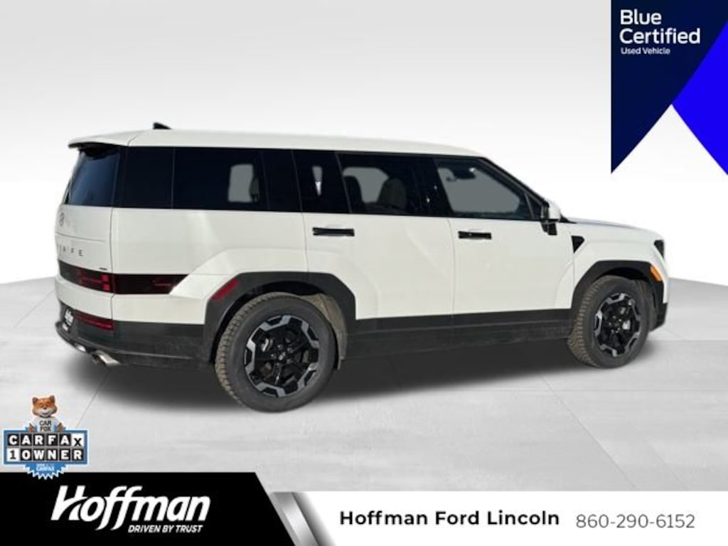 Santa Fe SE, Serenity White, 18" x 7.5J Alloy Wheels, 3rd row seats: bench, 4-Wheel Disc Brakes, 6 Speakers, ABS brakes, Air Conditioning, AM/FM radio: SiriusXM, Apple CarPlay & Android Auto, Auto High-beam Headlights, Brake assist, Bumpers: body-color, Carpeted Floor Mats, Delay-off headlights, Driver door bin, Driver vanity mirror, Dual front impact airbags, Dual front side impact airbags, Electronic Stability Control, Emergency communication system, Exterior Parking Camera Rear, Four wheel independent suspension, Front anti-roll bar, Front Bucket Seats, Front Center Armrest, Front reading lights, Fully automatic headlights, Heated door mirrors, Illuminated entry, Knee airbag, Leather steering wheel, Low tire pressure warning, Occupant sensing airbag, Option Group 01, Outside temperature display, Overhead airbag, Overhead console, Panic alarm, Passenger vanity mirror, Power door mirrors, Power Liftgate, Power steering, Power windows, Radio: AM/FM/HD Display Audio, Rear anti-roll bar, Rear seat center armrest, Rear side impact airbag, Rear window defroster, Rear window wiper, Remote keyless entry, Security system, Speed control, Speed-sensing steering, Split folding rear seat, Spoiler, Steering wheel mounted audio controls, Tachometer, Telescoping steering wheel, Tilt steering wheel, Traction control, Trip computer, Variably intermittent wipers, YES Essentials Stain-Resistant Cloth Seat Trim.