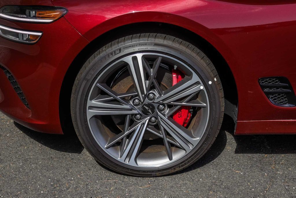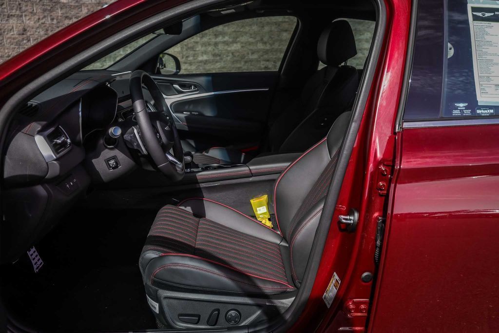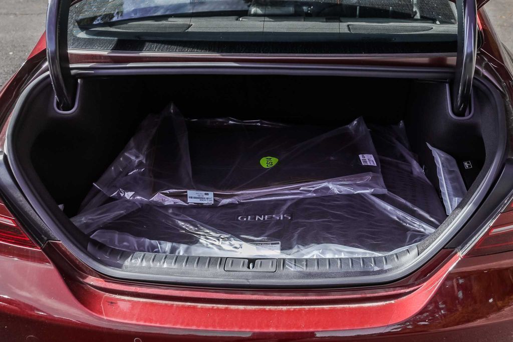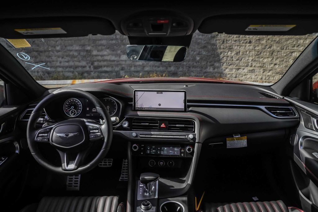 SPORT PRESTIGE PACKAGE -inc: Option Group 02 Power Folding ECM Outside Mirrors Genesis logo puddle lamps Sport Aluminum Trim Rain-Sensing Wipers Front Passenger Seat Walk-In Device Power Telescoping Steering Wheel Dark Chrome Grille & Daylight Opening Trim Forward & Reverse Parking Distance Warning Integrated Memory System (IMS) memory for driver seat outside mirrors and steering column Acoustic Front Door Glass Radio: AM/FM/SiriusXM/HD Lexicon Prem Audio System QuantumLogic surround sound 15 high efficiency speakers including 2 subwoofers Lexicon 11-channel digital external amplifier speed-sensing 5th generation navigation system w/10.25" touchscreen dynamic voice recognition connected routing over the air updates Android Auto and Apple CarPlay SiriusXM Radio w/90-day trial subscription (not available in Alaska or Hawaii) Genesis connected services Bluetooth hands-free phone and audio streaming system Wheels: 19" x 8.0J Fr & 19" x 8.5J Rr Sport Alloy 12-Way