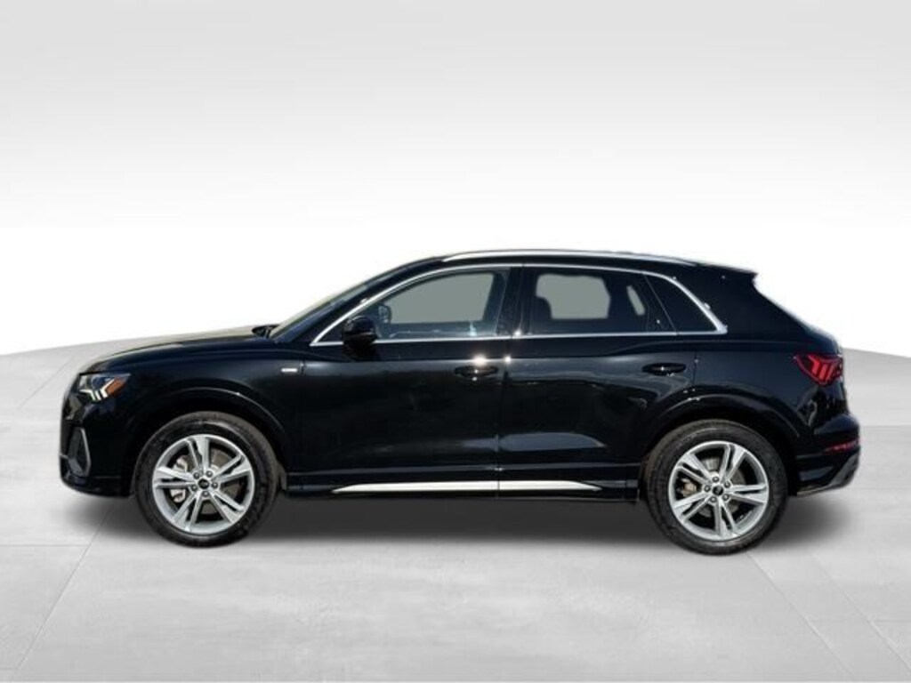 ONE OWNER, CLEAN CARFAX...NO ACCIDENTS, PREMIUM PKG, 6 MONTHS/6000 MILES POWERTRAIN WARRANTY, 10 Speakers, 3.53 Axle Ratio, 4-Wheel Disc Brakes, ABS brakes, Air Conditioning, Alloy wheels, AM/FM radio, Audi smartphone interface (Apple CarPlay/Android Auto), Auto High-beam Headlights, Automatic temperature control, Brake assist, Bumpers: body-color, Delay-off headlights, Driver door bin, Driver vanity mirror, Dual front impact airbags, Dual front side impact airbags, Electronic Stability Control, Emergency communication system: Audi connect CARE, Exterior Parking Camera Rear, Four wheel independent suspension, Front anti-roll bar, Front Bucket Seats, Front Center Armrest, Front dual zone A/C, Front fog lights, Front reading lights, Fully automatic headlights, Heated door mirrors, Heated Front Bucket Seats, Heated front seats, Illuminated entry, Knee airbag, Leather Seating Surfaces, Leather Shift Knob, Leather steering wheel, Low tire pressure warning, Occupant sensing airbag, Outside temperature display, Overhead airbag, Overhead console, Panic alarm, Passenger door bin, Passenger vanity mirror, Power door mirrors, Power driver seat, Power Liftgate, Power moonroof: Panoramic, Power passenger seat, Power steering, Power windows, Radio data system, Radio: Audi Sound System, Rain sensing wipers, Rear air conditioning, Rear anti-roll bar, Rear fog lights, Rear reading lights, Rear seat center armrest, Rear window defroster, Rear window wiper, Remote keyless entry, SiriusXM, Speed control, Speed-sensing steering, Split folding rear seat, Spoiler, Steering wheel mounted audio controls, Tachometer, Telescoping steering wheel, Tilt steering wheel, Traction control, Trip computer, Turn signal indicator mirrors, Variably intermittent wipers, Wheels: 18" 5-V-Spoke-S Design. CARFAX One-Owner. Clean CARFAX. Certified. Mythos Black Metallic 2024 Audi Q3 Premium S Line quattro quattro 8-Speed Automatic with Tiptronic 2.0L 4-Cylinder TFSI