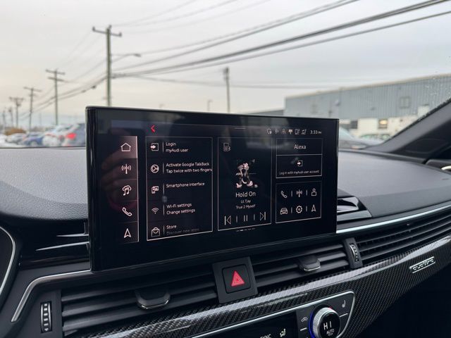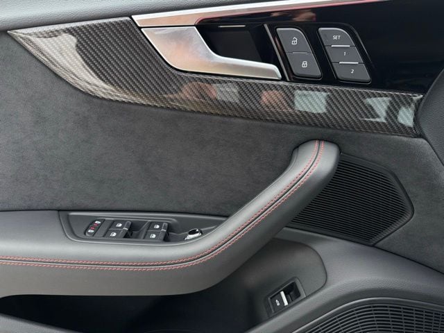 PREMIUM PLUS PKG, 6 MONTHS/6000 MILES POWERTRAIN WARRANTY, 10 Speakers, 2 Rear USB Charge Ports, 4-Wheel Disc Brakes, ABS brakes, Air Conditioning, Alarm System with Motion Sensor, Alloy wheels, AM/FM radio, Audi Advanced Key, Audi Connect NAV and PLUS, Audi MMI Navigation Plus, Audi Side Assist with Pre Sense Rear, Audi Sport Interior Package, Audi Virtual Cockpit Plus, Auto High-beam Headlights, Auto-Dimming Exterior Mirrors with Memory, Auto-dimming Rear-View mirror, Automatic temperature control, Bang & Olufsen Sound System with 3D Sound, Brake assist, Bumpers: body-color, Compass, Convenience Package, Delay-off headlights, Driver door bin, Driver vanity mirror, Dual front impact airbags, Dual front side impact airbags, Electronic Stability Control, Emergency communication system: Audi connect CARE, Exterior Parking Camera Rear, Four wheel independent suspension, Front anti-roll bar, Front Bucket Seats, Front Center Armrest, Front dual zone A/C, Front fog lights, Front reading lights, Garage door transmitter: HomeLink, Heated door mirrors, Heated Front S Sport Seats, Heated front seats, Heated steering wheel, Illuminated entry, Knee airbag, Leather Shift Knob, Leather steering wheel, Leather/Dinamica Seating Surfaces, Leatherette Covered Center Console and Door Armrests, LED Interior Lighting Plus Package, Low tire pressure warning, Memory For Driver Seat, Occupant sensing airbag, Outside temperature display, Overhead airbag, Overhead console, Panic alarm, Passenger door bin, Passenger vanity mirror, Power door mirrors, Power driver seat, Power Folding Exterior Mirrors, Power Liftgate, Power moonroof, Power passenger seat, Power steering, Power windows, Premium Plus Package, Radio data system, Radio: Audi Sound System, Rear air conditioning, Rear anti-roll bar, Rear reading lights, Rear seat center armrest, Rear window defroster, Remote keyless entry, SiriusXM with 360L, Speed control, Speed-sensing steering, Split folding rear seat, Spoiler, Steering wheel mounted audio controls, Tachometer, Telescoping steering wheel, Tilt steering wheel, Top View Camera System, Traction control, Traffic Sign Recognition, Trip computer, Turn signal indicator mirrors, Wireless Phone Charging Pad. CARFAX One-Owner. Daytona Gray Pearl 2025 Audi S5 Sportback Premium Plus quattro quattro 8-Speed Automatic with Tiptronic 3.0L TFSI