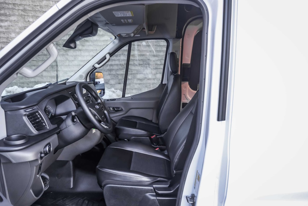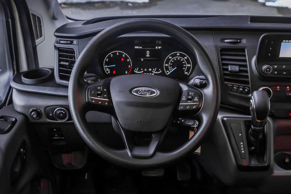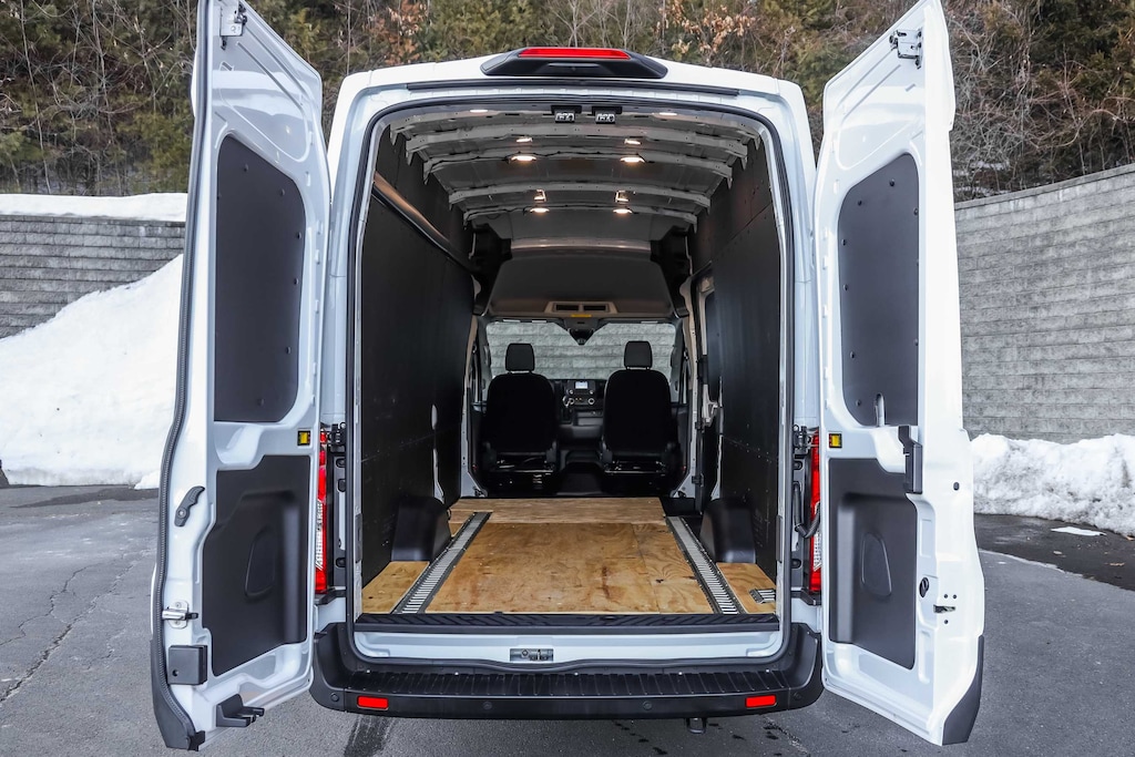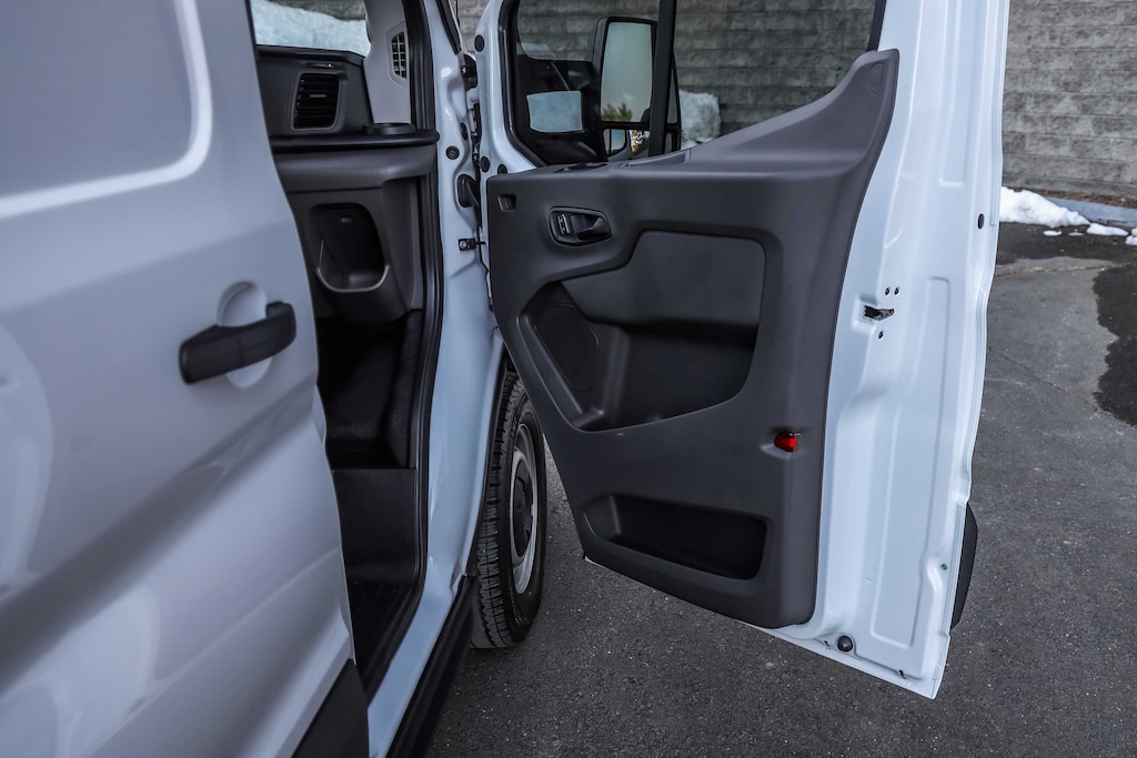 The Transit-350 Base is equipped with a host of features designed to make your life easier. The full-height polypropylene cargo area panels, wheel well liners, and vinyl flooring of the Load Area Protection Package provide durable, easy-to-clean surfaces to handle your toughest jobs. The rear compartment lighting and 6 cargo tie-down hooks make it simple to load and unload your gear, while the Reverse Sensing System helps you maneuver with confidence.