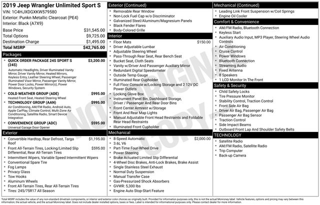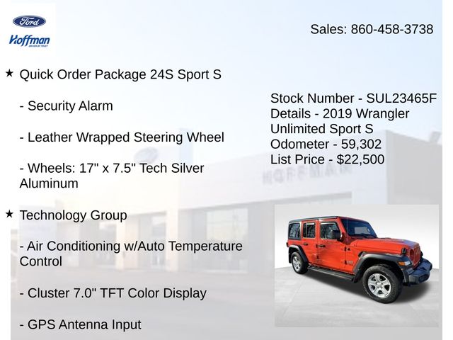2019 Jeep Wrangler Unlimited Sport S Priced below KBB Fair Purchase Price! Odometer is 16005 miles below market average!