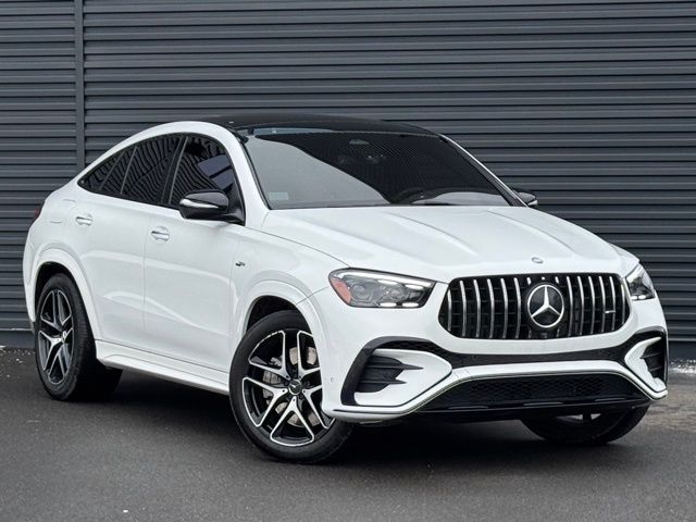 PREMIUM PACKAGE, 6 MONTHS 6000 MILES POWERTRAIN WARRANTY, 13 Speakers, 21" AMG® Twin 5-Spoke Wheels, 4-Wheel Disc Brakes, Adaptive suspension, Air Conditioning, Alloy wheels, AM/FM radio: SiriusXM, AMG® Night Package, Anti-whiplash front head restraints, Apple CarPlay®/Android Auto®, Auto High-beam Headlights, Auto tilt-away steering wheel, Auto-dimming door mirrors, Auto-dimming Rear-View mirror, Auto-leveling suspension, Automatic temperature control, Axle Ratio: TBD, Brake assist, Brushed Aluminum Trim, Bumpers: body-color, Compass, Delay-off headlights, Driver door bin, Driver vanity mirror, Dual front impact airbags, Dual front side impact airbags, Electronic Stability Control, Emergency communication system: eCall Emergency System, Four wheel independent suspension, Front anti-roll bar, Front Bucket Seats, Front Center Armrest, Front dual zone A/C, Front reading lights, Fully automatic headlights, Garage door transmitter: HomeLink, Heated door mirrors, Heated front and rear seats, Heated Power Front Seats w/Driver Memory, Heated Steering Wheel, Heated Windshield Washer System, High Performance Tires, Illuminated entry, Knee airbag, Leather steering wheel, Low tire pressure warning, MB-Tex Dashboard & Door Panels, Memory seat, Nappa Leather Seat Trim, Navigation system: MBUX, Occupant sensing airbag, Outside temperature display, Overhead airbag, Panic alarm, Park Assist (Front & Rear) Incl. Surround View, Passenger door bin, Passenger vanity mirror, Porsche Ceramic Composite Brake (PCCB), Power adjustable front head restraints, Power door mirrors, Power driver seat, Power Liftgate, Power moonroof: Panorama, Power passenger seat, Power steering Plus, Power windows, Premium audio system: MBUX, Radio data system, Radio: MBUX 12.3" Media Display w/Touchscreen, Rain sensing wipers, Rear anti-roll bar, Rear fog lights, Rear reading lights, Rear seat center armrest, Rear window defroster, Remote keyless entry, Security system, Speed control, Speed-sensing steering, Speed-Sensitive Wipers, Split folding rear seat, Spoiler, Sport steering wheel, Steering wheel memory, Steering wheel mounted audio controls, Tachometer, Telescoping steering wheel, Tilt steering wheel, Traction control, Trip computer, Turn signal indicator mirrors, Ventilated Front Seats, Ventilated front seats, Weather band radio, Winter Package. CARFAX One-Owner. Clean CARFAX. Polar White 2024 Mercedes-Benz GLE GLE 53 AMG® 4MATIC® 4MATIC® 9-Speed Automatic 3.0L I6 Turbo