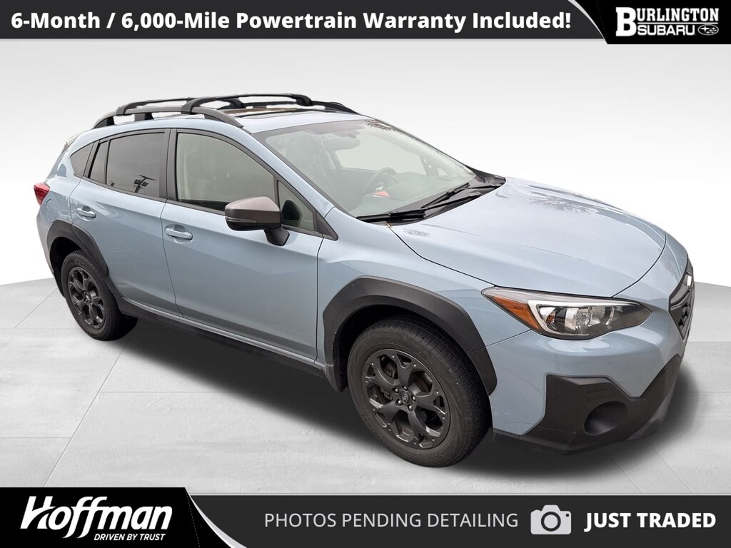 CARFAX One-Owner. Subaru Crosstrek Sport 2023 4-Wheel Disc Brakes, ABS brakes, Air Conditioning, Alloy wheels, AM/FM radio: SiriusXM, Anti-whiplash front head restraints, Automatic temperature control, Blind Spot Detection w/Rear Cross-Traffic Alert, Brake assist, CD player, Driver vanity mirror, Dual front impact airbags, Dual front side impact airbags, Electronic Stability Control, Emergency communication system: STARLINK Safety and Security (Subscription Required), Exterior Parking Camera Rear, Four wheel independent suspension, Front fog lights, Front reading lights, Fully automatic headlights, Heated door mirrors, Heated Front Bucket Seats, Illuminated entry, Knee airbag, Leather Shift Knob, Low tire pressure warning, Moonroof & BSD w/RCTA & 8.0" Multimedia Plus Audio, Occupant sensing airbag, Outside temperature display, Overhead airbag, Panic alarm, Passenger vanity mirror, Power door mirrors, Power Moonroof, Power steering, Power windows, Radio: Subaru STARLINK 8.0" Multimedia Plus System, Rear window defroster, Remote keyless entry, Speed control, Speed-sensing steering, Split folding rear seat, STARLINK/Apple CarPlay/Android Auto, StarTex Upholstery, Steering wheel mounted audio controls, Tachometer, Telescoping steering wheel, Tilt steering wheel, Traction control, Trip computer, Turn signal indicator mirrors.