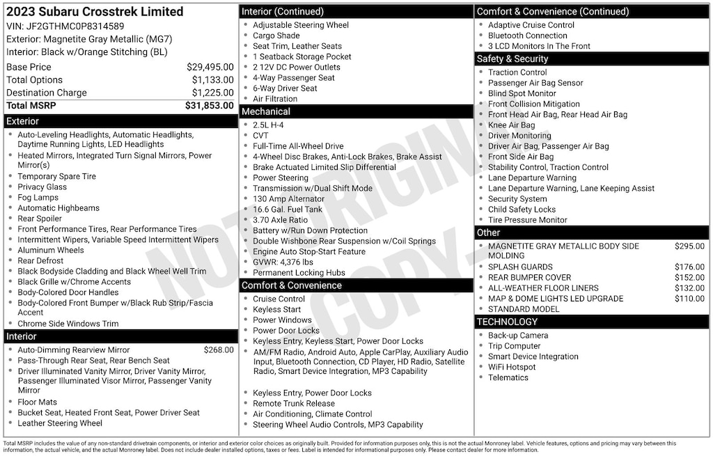 I have owned my Crosstrek Limited for only a few weeks. So far I am very happy with this vehicle. It looks great inside and out. The seats are very comfortable. I love all of the new safety features. Subaru has done a really impressive job with the eysight system. Its too soon comment on gas mileage. The car is fun to drive. It is very quiet and is fairly peppy despite the small engine. There are just a few minor a few things that I am disappointed in. The doors do not automatically lock. This is unusual for a top of the line trim model. Also the navigation is not up to par with the Garmin that I had previously. Because of the eysight cameras, it is awkward to adjust the rear view mirror as the top of the mirror is almost touching the bottom of the camera housing. You can only adjust it from the bottom and this is where the homelink controls are. This is not that big of a deal, only slightly annoying. Its just a result a putting a lot of equipment into a small car. Overall I am very happy with the Crosstrek and would highly recommend it to anyone looking for a small AWD crossover.…