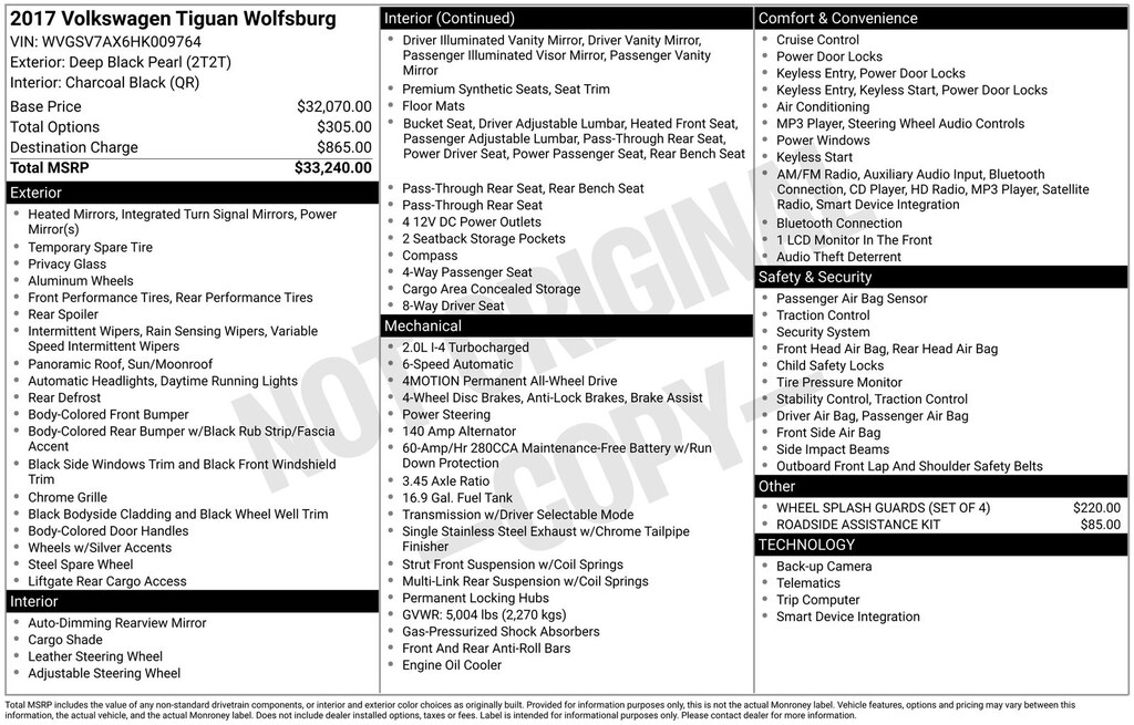 2017 Volkswagen Tiguan 2.0T Wolfsburg Edition 4MOTION